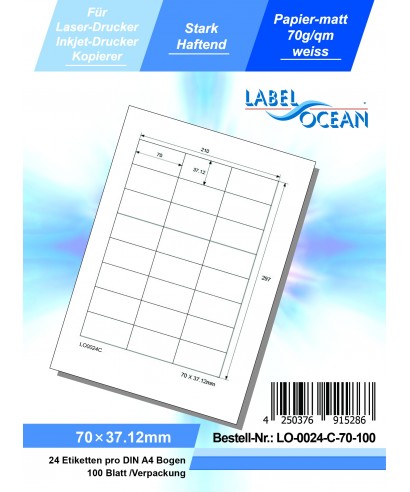 Etichete Autoadezive LabelOcean pe Suport A4 Dimensiuni 70x37.12 mm Mate 100 Coli